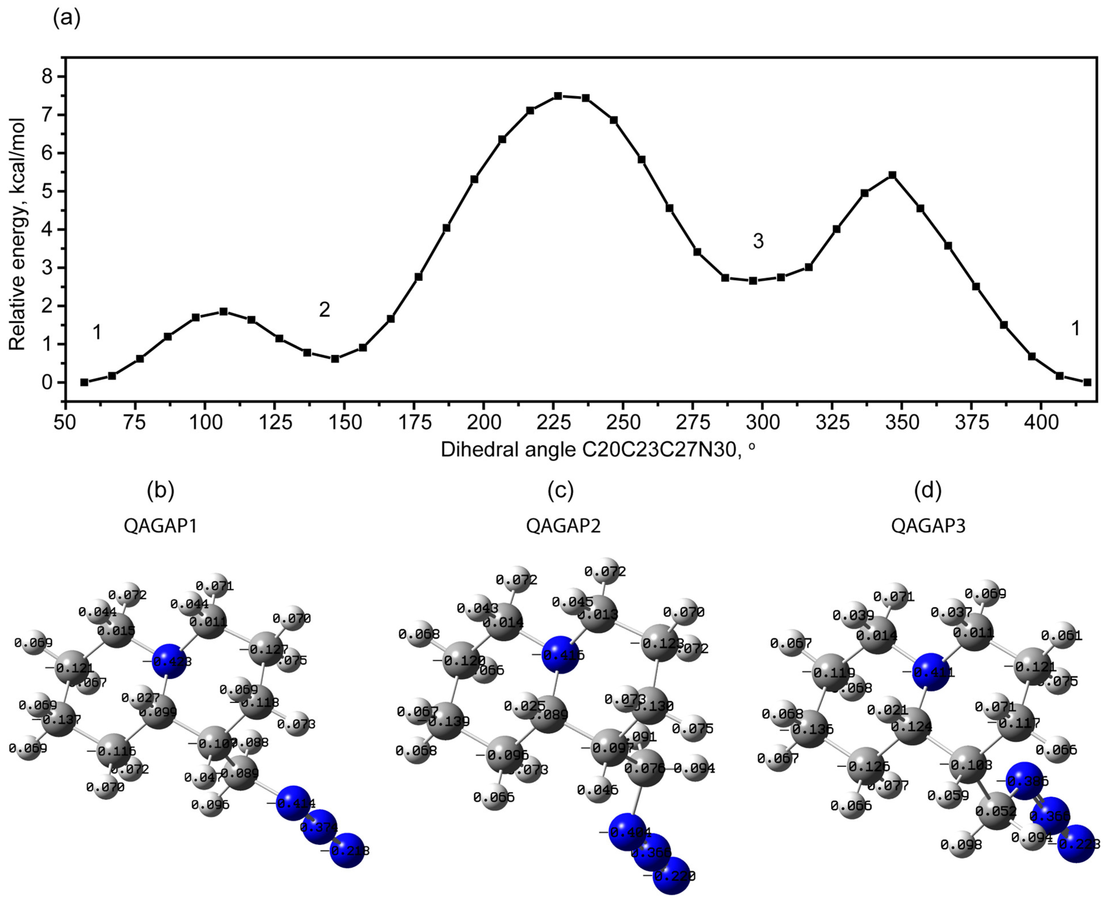 Quinolizidine derivatives are an important class of substances that are used in the pharmaceutical industry. In previous studies, the synthesis of these substances is carried out using lupinine azide (IUPAC: 1-(azidomethyl)octahydro-2H-quinolizine), which is often used to obtain new biologically active compounds. In this regard, its structural characterization is critically important. In this work, the conformational diversity of the molecular structure of this compound has been studied. It is shown that the structure with the axial position of the methyl azide group contains a number of low-energy conformer states with energies higher than the ground state by 0.15–0.60 kcal/mol. Such structural ambiguity should manifest itself in the chemical reactions and biological activity of lupinine azide. The spectroscopic properties of the conformers were studied by modeling chemical shifts for carbon and hydrogen atoms, as well as by simulating IR absorption spectra. An analysis of the most specific spectroscopic features of all of the conformers was carried out. Based on the correlation of the theoretical results and the experimental spectroscopic data, a conclusion was made for the first time regarding the most probable conformational states in the solution.