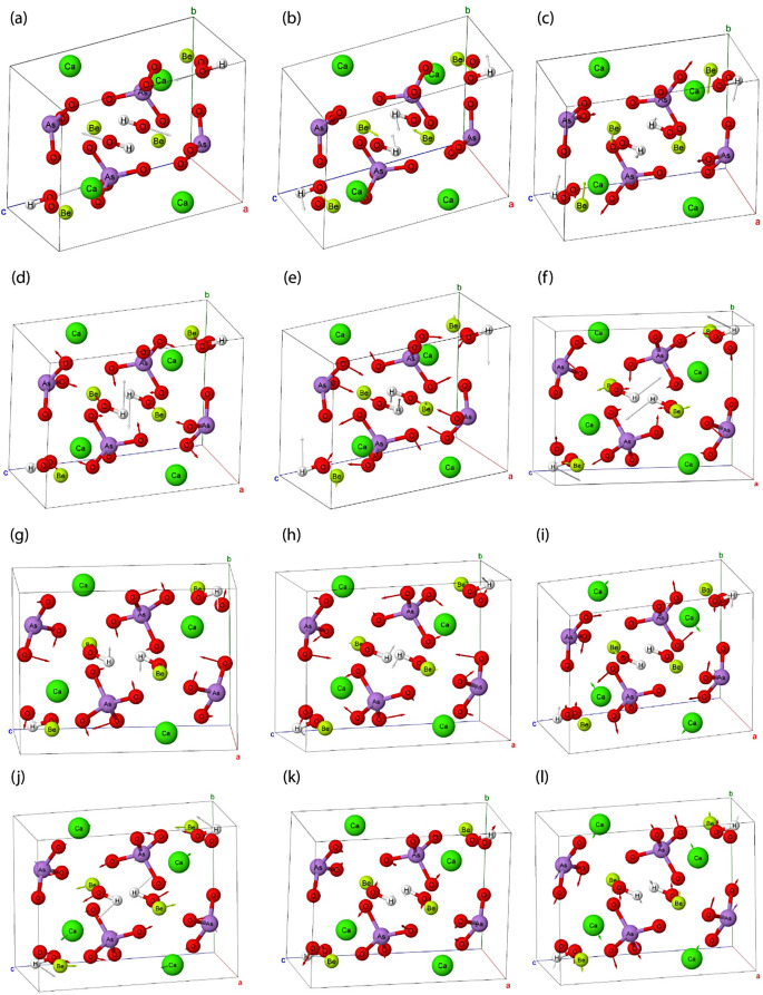 Bergslagite, Ca2Be2As2O8(OH)2, is one of the only three known berylloarsenate minerals and is a member of the gadolinite supergroup. To date, very little is known about the thermal behavior of beryllium compounds and not much more about arsenates, while the thermal behavior of berylloarsenates (both natural and synthetic) has not been previously studied at all. In this work, the low and high-temperature behavior and thermal stability of bergslagite were studied in situ using single-crystal X-ray diffraction. Besides, its Raman spectrum was obtained and compared to the calculated one. Bergslagite does not undergo a phase transition in the temperature range − 173 to 700 °C, whereas it amorphizes at higher temperatures. The TO4-based (T = Be, As) framework remains stable, while the CaO6(OH)2 polyhedra are slightly expanding. The volume thermal expansion coefficient (32 × 10− 6 °C− 1) is comparable with borosilicate / beryllophosphate analogues (30–35 × 10− 6 °C− 1). The low thermal stability of bergslagite can be associated with the vacant octahedral position, which is occupied by divalent cations in more thermally stable beryllosilicate analogues.
